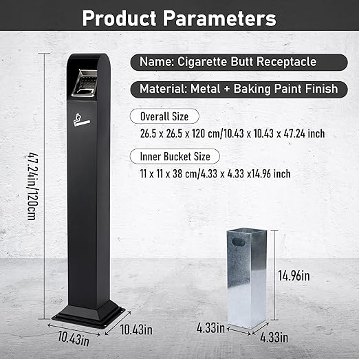 - SIZE: The trash bin outdoor measures 47.24 x 10.43 x 10.43 inches, enough height to throw trash into the trash can without bending down. And comes with 4 screws to hold the trash can in place, not easily knocked down
