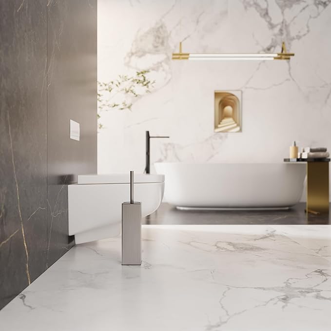 - Space-saving design:Toilet brush and holder fits into tight bathroom areas, making it easy to tuck away; Compact space saving design keeps your toilet brush hidden and provides a sanitary storage.