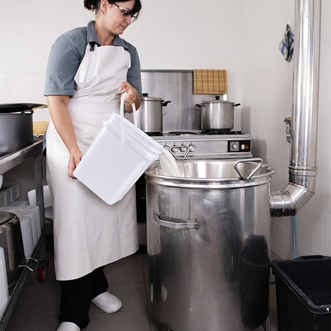 Bringer 4 Pcs 5 Gallon Square Plastic Bucket Pail with Lid, White Utility Square Food Storage Pail