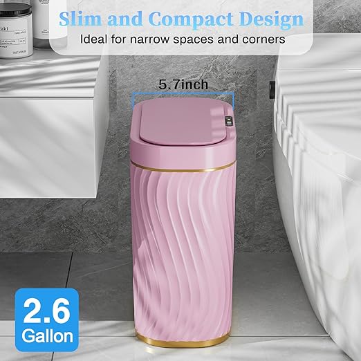 Pink Bathroom Trash can with Automatic Touchless Lid, 2.6 Gallon Motion Sensor Small Garbage Can, Slim Waterproof Smart Trash Bin for Bedroom, Office, Living Room