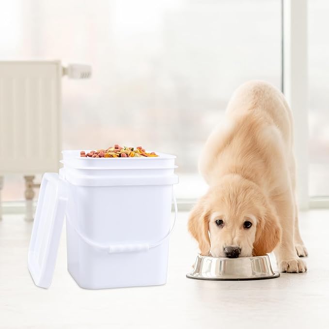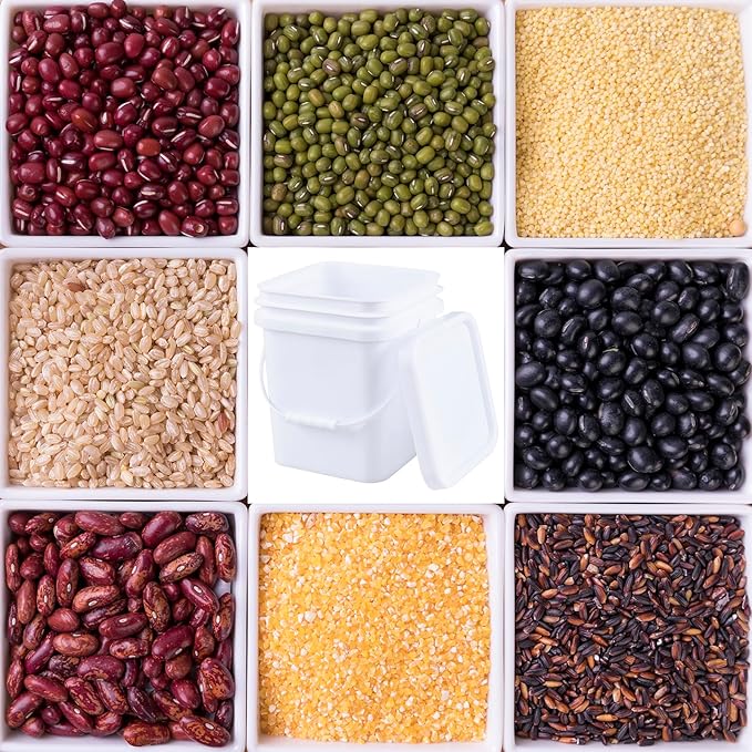 Plastic Bucket with Airtight Lid/Comfortable Handle, Heavy Duty White Pails Buckets for Storage (5 Gallon, 4 Pack)