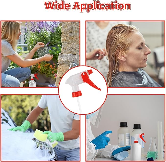 - Wide Application: These spray nozzle for bottles are versatile and can be used for a variety of purposes such as restroom cleaning, industrial or commercial cleaning, window cleaning, car washing, indoor air cleaning and more. Spray bottle tops replacement are ideal for gardeners, hairdressers, car washes, cleaners, you can use it any way you want