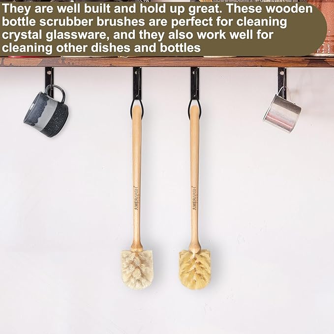 - Extra-Long Beechwood Handle & Comfortable Grip – The 13-3/4" Beechwood handle is designed for comfort and control, making it easy to clean tall vessels like vases, baby bottles, beer glasses, and travel mugs. Its ergonomic design ensures a secure grip, even when wet. These long-reaching bottle brushes will make cleaning the bottles easier and quicker.