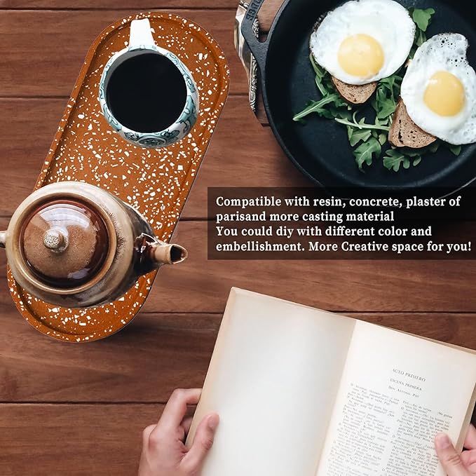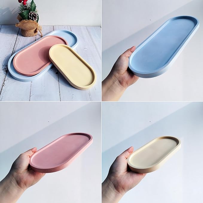 - 【3PCS LARGE TRAY MOLD】Package includes 3 different size of oval tray silicone mold. The largest one is 13x5.7x0.7in, the middle size is 9.7x5.1x0.55in, the smallest one is 7.7x4.4x0.59in. They could make various practical large tray to organize items in one time. Compatible with most casting material like resin, cement, concrete and more. You could use it to diy tray with different colors, embellishment and casting material, to make various unique and eye-catching container or art work