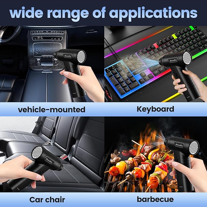 - 【Multiple Usage Scenarios】 This computer air duster can effectively clean all kinds of dust, laptops, car interiors, seats, and can also be used for outdoor picnics to blow fires, dry the hair of people and pets, and remove snow and leaves from the surface of the car, etc.