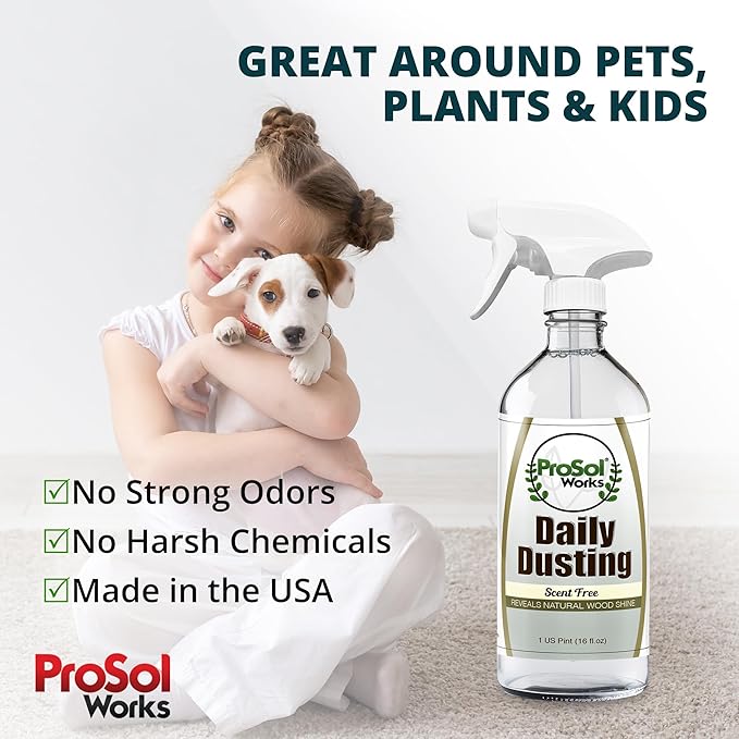 Daily Dusting Spray Surface Cleaner 16 oz - Wood Cleaner Cleaning Spray for Tables, Banisters, Old Wooden Cabinet, Doors, Decors & Antique Restorer Revealing Natural Shine