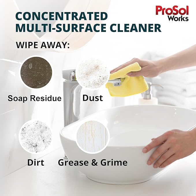 - Effective Cleaning Power - Our Bathroom Cleaner uses a powerful blend of water and gentle surfactants to tackle tough grime. It quickly removes soap residue, dust, dirt, grease, and grime from various surfaces including tiles, countertops, sinks, and tubs.