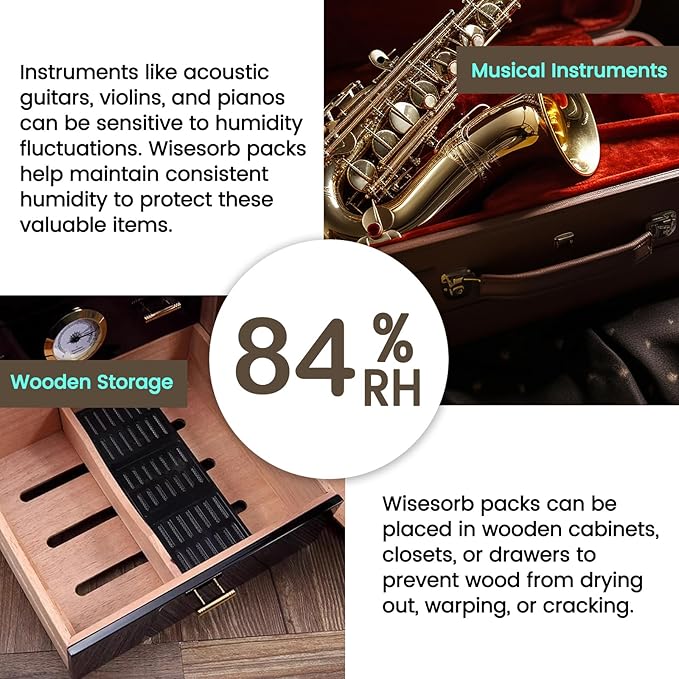 - 【Wisesorb Humidity Control Packs are Suitable for Preserving the Freshness of a Variety of Products】: Moisture packs are not limited to substances alone. They are suitable for preserving the freshness of various products, such as spices, brown sugar, coffee beans, music instrument and woodwind reeds. No matter what you store, humidity control packs work tirelessly to maintain the proper humidity level.