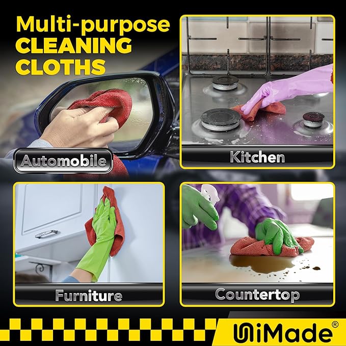 - Super Absorbent& Quick Dry: Crafted from premium microfiber, UNIMADE shop towels excel in soaking up oils, liquids, and workshop spills. Their highly absorbent qualities enhance their effectiveness in removing stubborn grime and grease