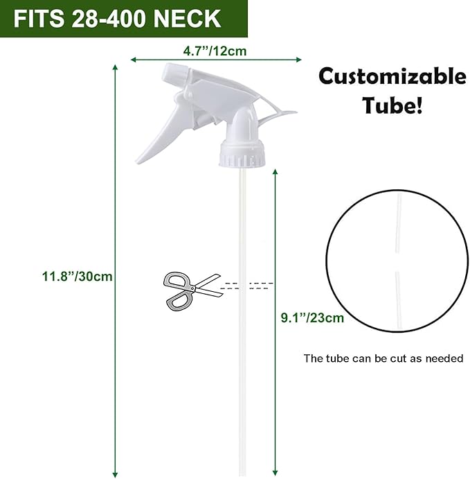 - Package Includes: You will receive 30 pcs trigger sprayer replacement nozzles, which can meet your requirements for using on different bottles. Each comes with a tube. The length of the spray bottle nozzle is 12.5''/32cm in length. You can cut the tube to the length you desire according to the height of your bottles.