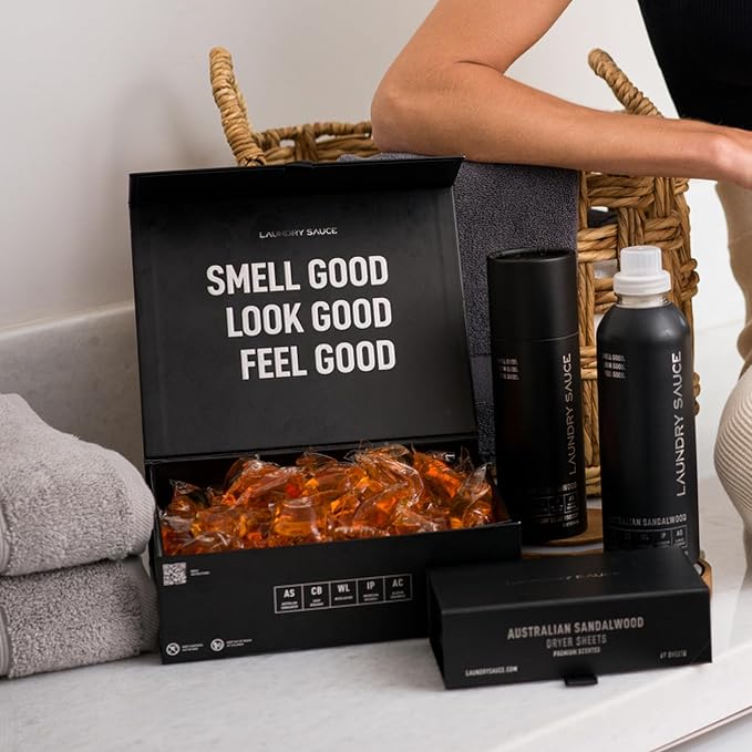 Laundry Sauce - Signature Bundle Australian Sandalwood, Scented Laundry Detergent Pods & Scent Booster, Fabric Softener, Dryer Sheets, Fabric Protection, Essential Oils, Long Lasting Luxury Fragrance