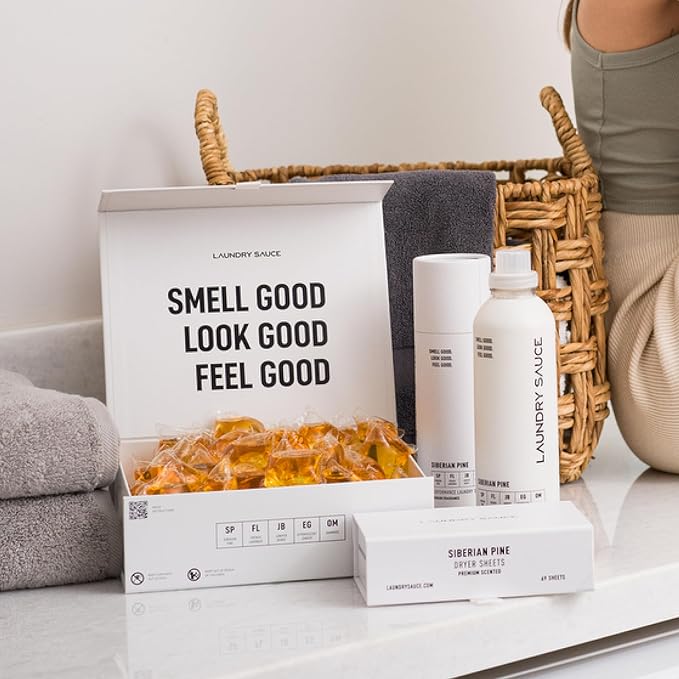Laundry Sauce - Signature Bundle Siberain Pine, Scented Laundry Detergent Pods & Scent Booster, Fabric Softener, Dryer Sheets, Fabric Protection, Essential Oils, Long Lasting Luxury Fragrance