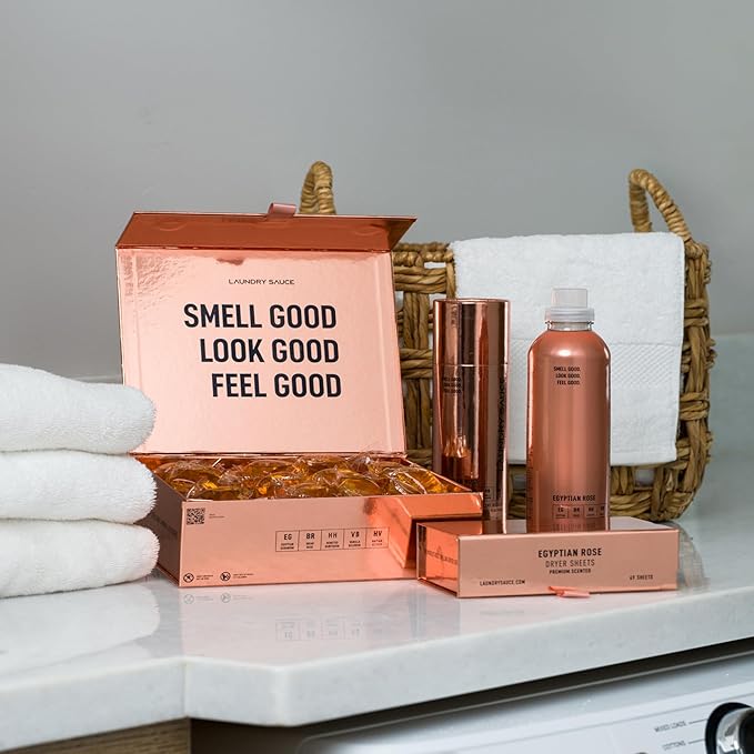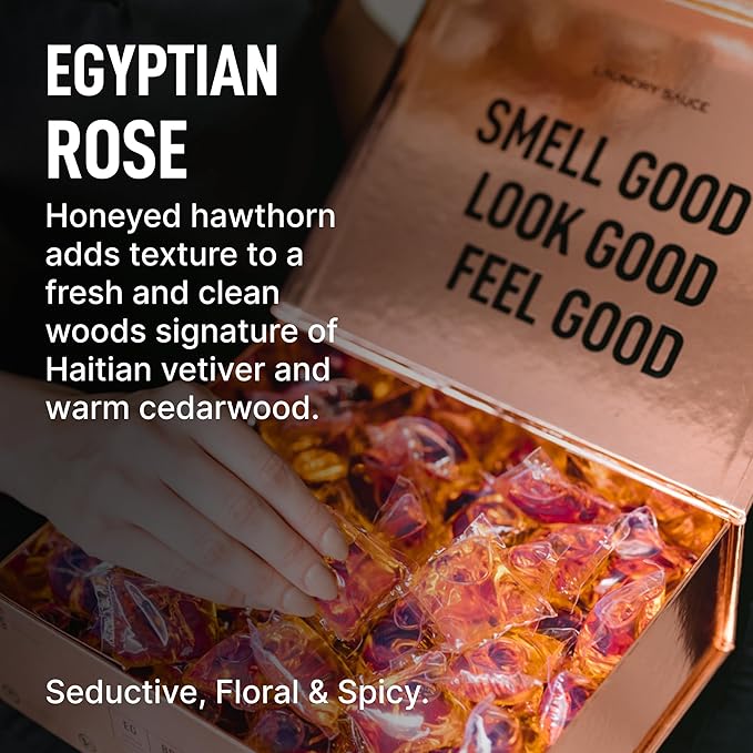 Laundry Sauce - Signature Bundle Egyptian Rose, Scented Laundry Detergent Pods & Scent Booster, Fabric Softener, Dryer Sheets, Fabric Protection, Essential Oils, Long Lasting Luxury Fragrance