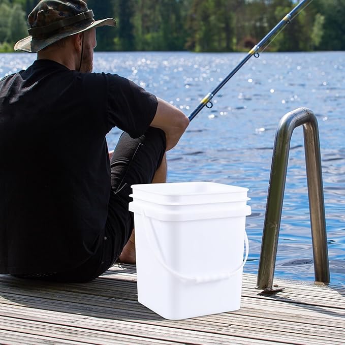 Zopnny 4 Pcs 5 Gallon Square Bucket, White Plastic Buckets with Handles, Snap Food Container Pail with Airtight Lid