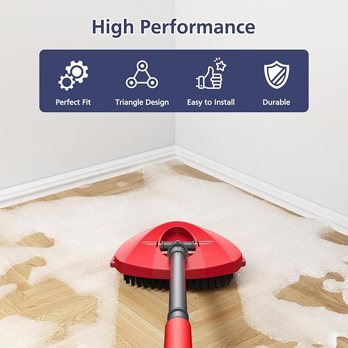 - 【High Efficient Cleaning】 The durable construction ensures long-lasting use and the precise design spin mop attachments fit for 180°triangle base makes it easy to clean floors no need to bend or squat. Its sturdy bristles effectively clean grime and dirt. Efficiently clean hard-to-reach areas of your kitchen and shower with this versatile scrubber mop brush head.