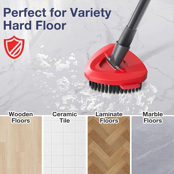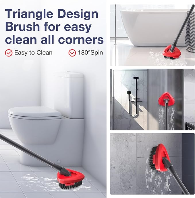 - γEfficient Cleaning for All Cornersγ The durable construction ensures long-lasting use and the precise design spin mop attachments fit for 180Β°triangle base makes it easy to clean floors no need to bend or squat. Its sturdy bristles effectively clean grime and dirt. Efficiently clean hard-to-reach areas of your kitchen and shower with this versatile scrubber brush.