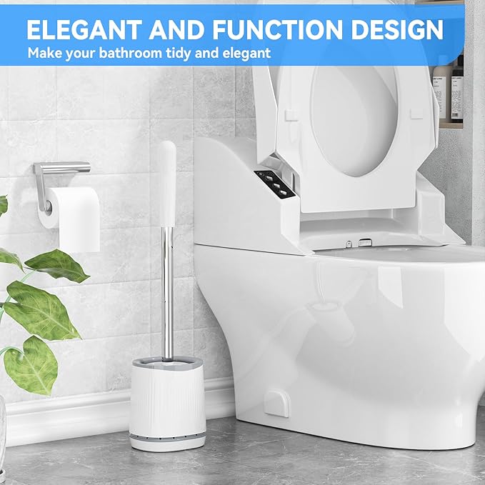 - Elegant And Stylish Design: This is a toilet brush with holder hiding brush, comfortable brush handle and effective brush. We not only focus on the cleaning of your toilet or bathroom, but also consider the neatness of the toilet brush itself. Elegant & simple.