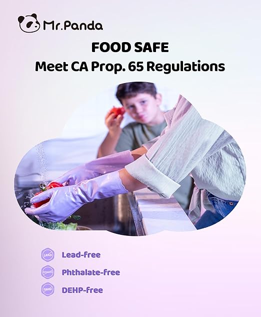 - Skin-Friendly: These latex and DEHP-free Mr.Panda dishwashing gloves are made of high-quality PVC, providing a better solution for people with sensitive skin. They redefine comfort and offer an excellent choice for a truly skin-friendly dishwashing experience.