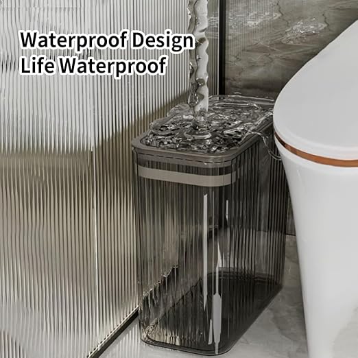 - 【Narrow Design】Size: 12.52*5.90*11.61 inches. The transparent garbage can with narrow design is suitable for any room in your home, especially for the corner, and it won’t take up much space.