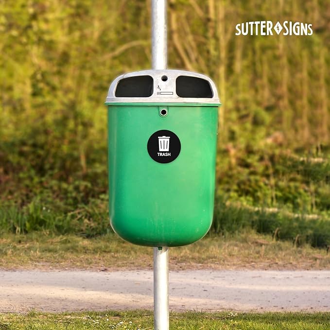 Sutter Signs 3pk Trash Stickers | 4" Weatherproof Waste Management Label Sign Decals for Outside Waste, Garbage Cans, and Trash Bins