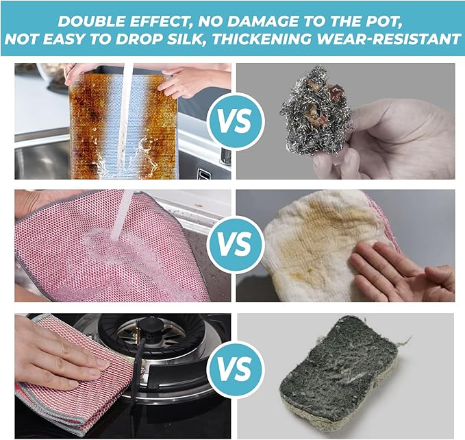- Efficient clening:Enjoyment a comfortable cleaning undergo, multipurpose wire miracle cleaning cloths using the flexible rhombus weaving process design fits the curved surface, increasing the cleaning efficiency by 50%,It has no chemical smell at and feels comfortable to the feel, easy to use, easy to carry, is a good helper for travel and home cleaning
