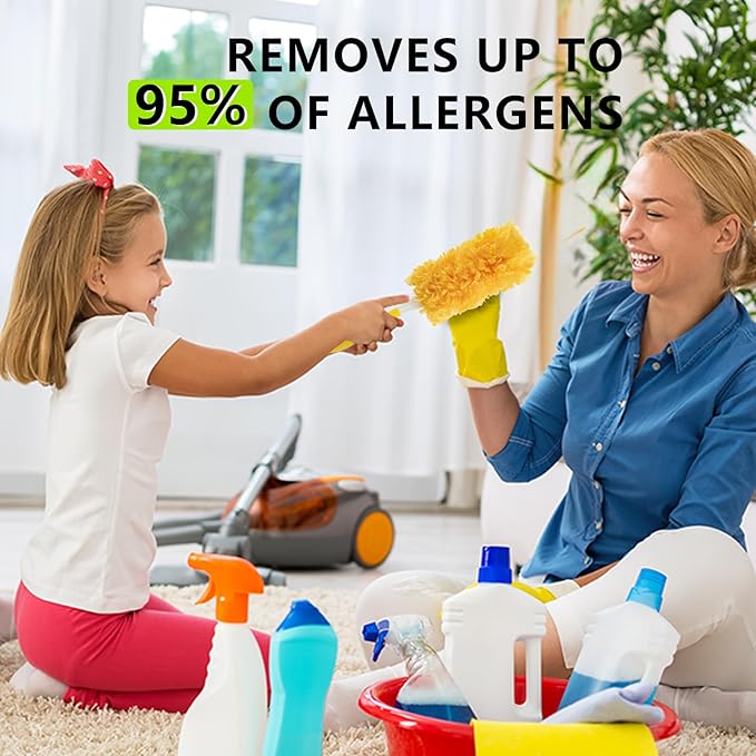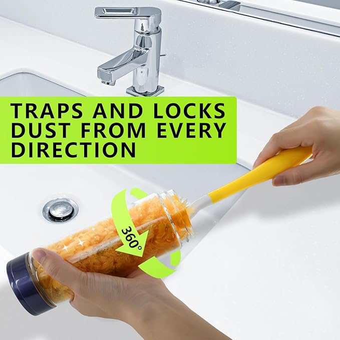 - 【Superior Dust Extraction Capacity】With thousands of fluffy, specially-coated fibers and a 360 degreesdesign, they grab onto dust in every direction.The duster head is very soft, like a cotton ball, and does not scratch any surface. This duster is good at picking up dust, with multiple sides and textures on the head to capture dust from every surface.