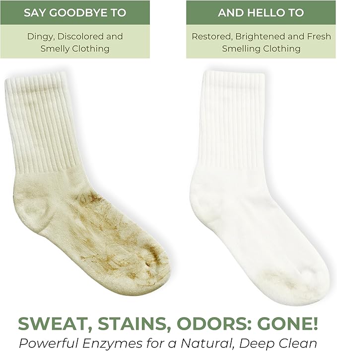 Athletic Sport Active wear Laundry Detergent | 4x Powerful Plant-Based Formula with Cleaning Enzymes for Sport Wash | Fragrance Free Natural Odor & Stain Remover