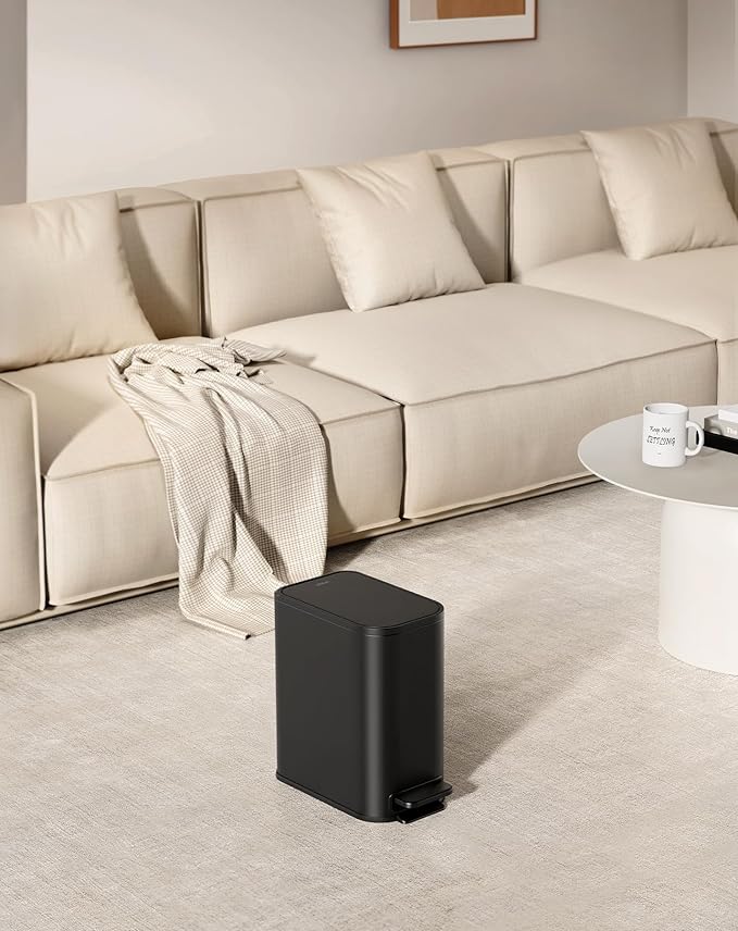 - Space Saving Brilliance: Measuring just 10.6"L x 5.8"W x 11"H, this slim trash can tucks neatly into narrow spaces, offering enough capacity for daily use while saving valuable floor space. It's designed to fit where you need it most