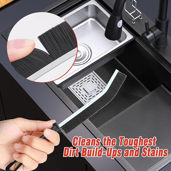 - SMALL BRUSH SIZES: Featuring skinny, tapered brush profiles, these tools are perfect for deep cleaning tight gaps and corners in appliances, backsplashes, grout, and more.This tiny scrub brush is suitable for cleaning various crevices and corners, including faucets and tub grout, shower door grooves, toilet seat crevices, floor tile grout, sliding glass door tracks, sink and washing machine crevices, refrigerator interiors, window seals, lime scale around faucets, window tracks, kitchen stove tops, car window sills, keyboard gaps and more.