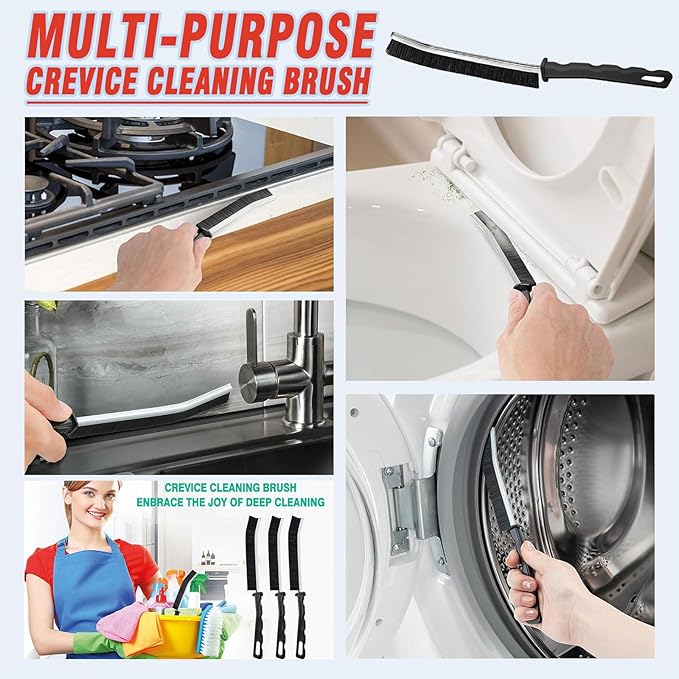 - VERSATILE CLEANING: This 6-piece set includes hard bristle crevice cleaning brushes, toilet brushes, and scrub brushes suitable for cleaning tight spaces and hard to reach areas in bathroom, kitchen, and appliances.cleaning brush