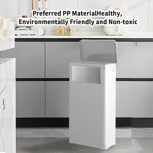 - [Premium Material] The bathroom trash can is made from durable and high quality plastic which won't chip, rust, or dent. Easy to clean and maintain, just wipe it with a damp cloth.