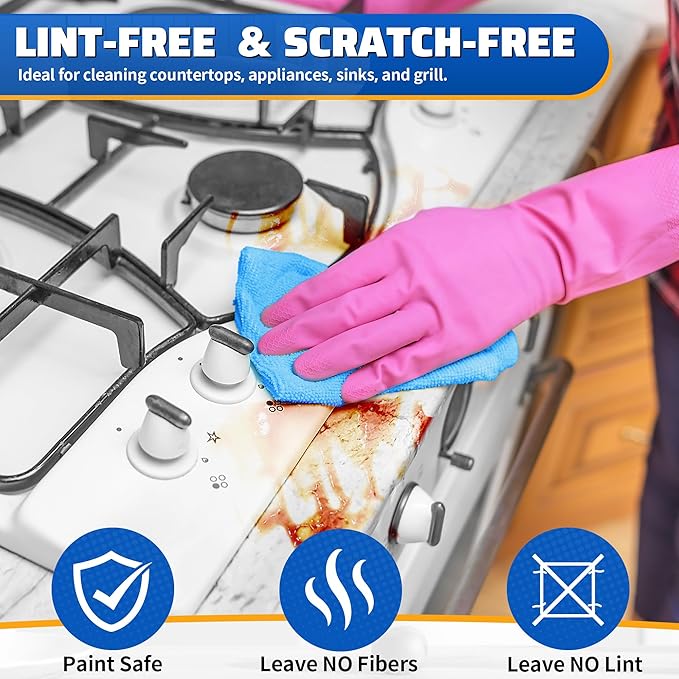 - NON-ABRASIVE & PAINT SAFE: Size 11.5" x 11.5", high capacity, economical 150 Pack. Featuring a sonic cut edge, these shop towels prevent scratching any surfaces including paints, stainless steel, glass, or ceramics in dry or wet conditions. Ultra-soft without tags and seams, these cleaning rags can block scratching issues from the first start. Accommodating all surfaces, our microfiber rags are great for housekeeping work and helpful for industrial and manufacturing processes.