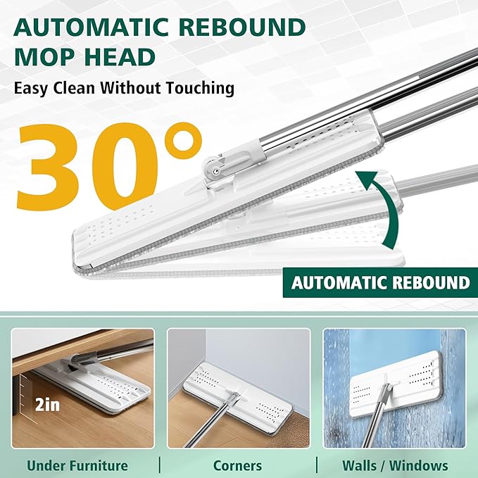 - EASY TO USE—The bucket has a handle, which can facilitate you to move the bucket and clean different locations and rooms. Our flat mop head can automatically rebound within 30 degrees without touching. It can effectively prevent dirt from getting on your hands.