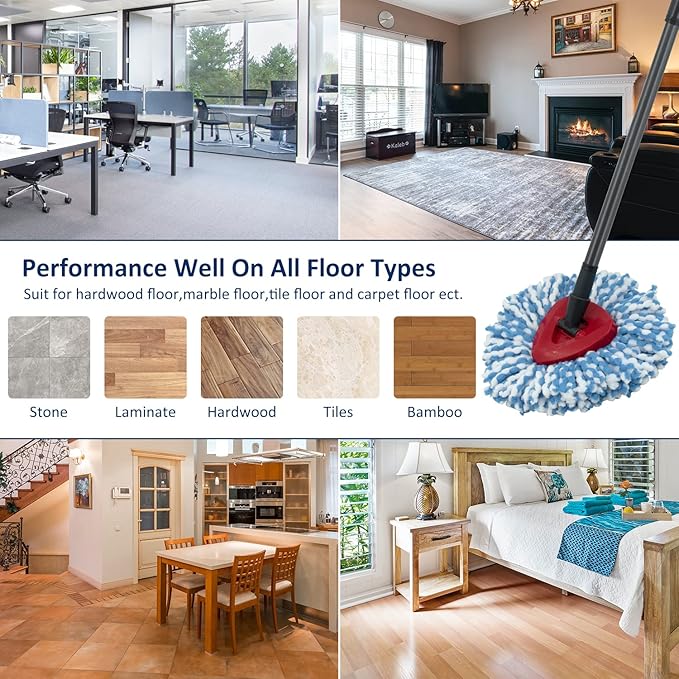 - ใDeep-Cleaning Mop Heads Replacementใ- Using the mop replace head making your mopping more easy: Soft and High Water Absorption Microfiber is Lightweight that can easily clean dust,pet hair and other grime when dry cleaning, Or deeply absorbs stains, waters and oil spots on dirty floor when wet cleaning.For floor mopping,we usually use a wet mop to clean the floor first, and then using dry mop to clean the streaks and water spots. Then the cleaning is done and we get a clean and dry floor.