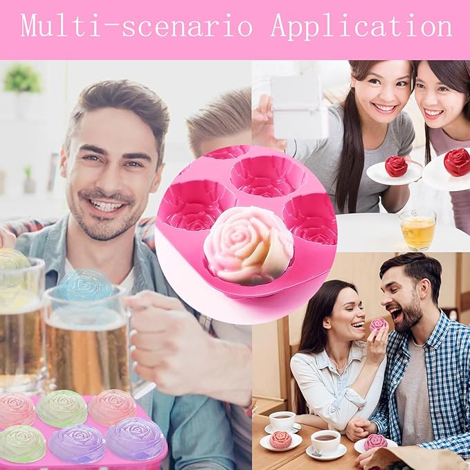 Rose Flower Soap Mold, 2 Pack Rose Ice Cube Mold, Rose Silicone Molds for Soap,Making Bath Bomb (Rose Flower)