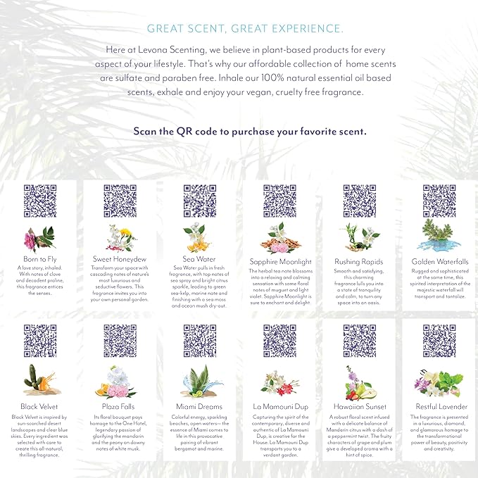 - LEVONA OIL COMPATIBILITY - Compatible with Levona's curated collection of essential oils, the Abela 100 allows for a personalized aroma experience. Explore a broad selection of fragrances to create the perfect mood for focus, or entertainment, enriching any home or hotel environment with distinctive aromas.