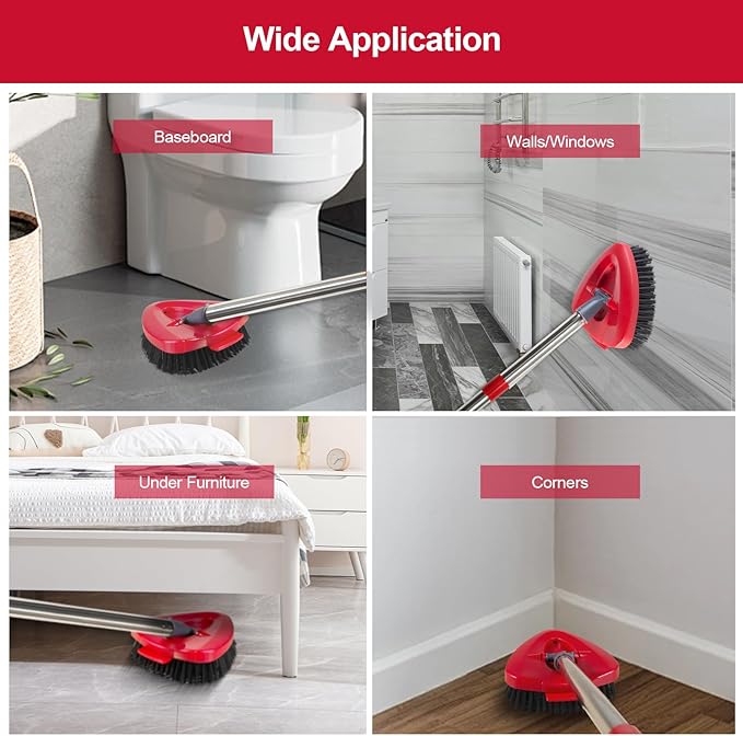 - Multifunctional cleaning Brush: You just need to detach your spin mop heads and replace with this floor scrub cleaning brush, you can use the scrubbing mops for floor cleaning, or a wide range of surfaces, including bathroom tiles, bathtubs, shower tiles, kitchen floors, garden or patio floors, walls, baseboards, windows, doors, sinks, countertops, toilets, and narrow spaces around the bathroom.
