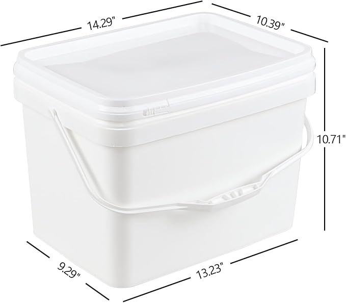 - 4 white bucket pail with lid, rectangular profile, made from reinforced plastic, bpa free and odor-free, have a great performance in durability