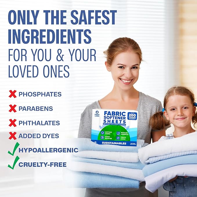 - Mess-Free Laundry Solution – No more heavy bottles or sticky spills. Each softener sheet is pre-measured, making laundry simple, clean, and easy for everyday washing.