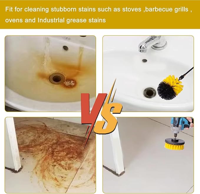 - 【8 Different Brushes】8 different drill brushes including 3pcs 1 Inch flat brush,2pcs 2 Inch flat brush,2pcs 2.5 Inch corner brush,4pcs 4 Inch flat brush,2pcs 5 Inch flat brush,2pcs 3.5 Inch long round brush,1pcs 5 Inch pointed long round brush,1pcs 5.5 Inch Edge Brush,1pcs 150mm Extended reach attachment easily meets your home or commercial cleaning needs.