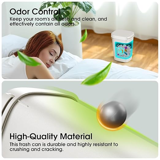 - Odor control: The trash can lid is tightly closed, effectively controlling odor spillage, and keeping the room air fresh and clean, it's pet-proof so your pets can't get inside