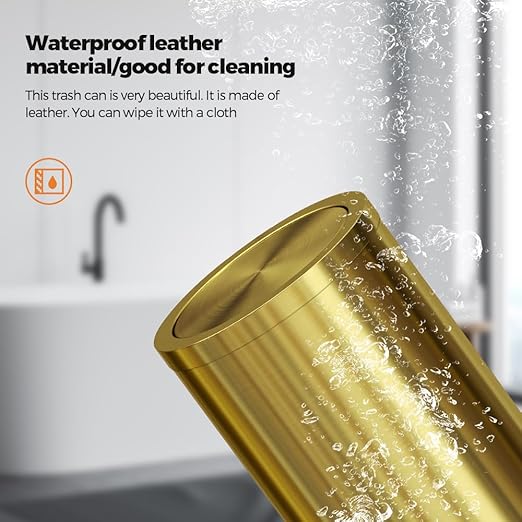 - [Composition] : This golden kitchen trash can is made up of three parts - a beautiful stainless steel lid, a PP plastic pressure ring to hold the garbage bag in place, and a sturdy stainless steel bucket body. This design ensures that the bags are perfectly hidden inside, avoiding unsightly problems caused by exposure.