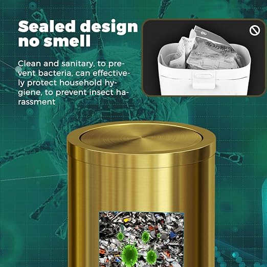 - [Swing Lid Design] : The lid is made of stainless steel and made by fine drawing process, which not only increases the structural strength but also enhances the overall high-grade feeling. The unique swing cover design supports 360-degree rotation and automatic return, making the disposal of garbage more convenient and fast operation, but also ensure good sealing, effectively reduce odor diffusion.