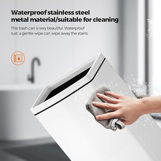 - Durable and wear-resistant: The square trash can has a stainless steel ring on the opening, and the fixed garbage bag is not exposed, which is fashionable; The bottom of the barrel is covered with rubber rings, reducing wear and friction between the barrel and the ground
