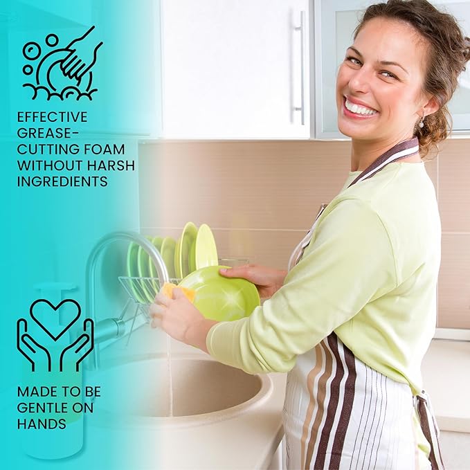 - NON-TOXIC AND EFFECTIVE: Our foaming dish soap is made with gentle, non-toxic ingredients, making it perfect for anyone with sensitive skin. Free from Methylisothiazolinone, Chlorine, Phosphate, Triclosan, Formaldehyde. Non-toxic yet powerful biodegradable dish soap cuts through grease and dried-up food in a safe and effective way