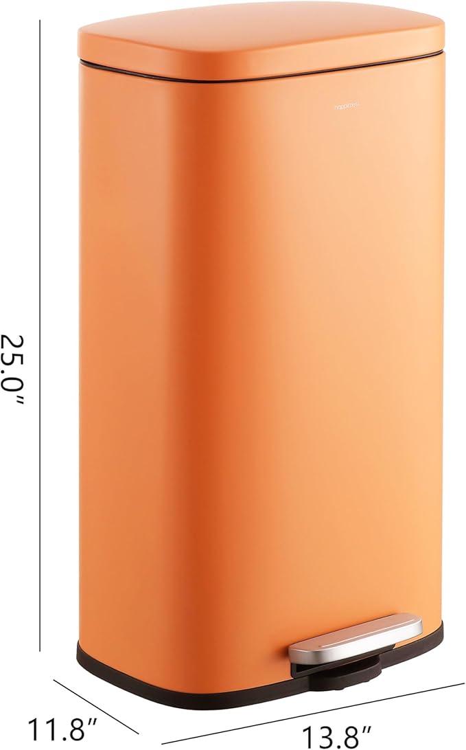 happimess HPM1011K Curtis 8-Gallon Step-Open Trash Can, Carrot Cake,with Soft-Close Lid, Fingerprint Resistant, Modern, Minimalistic for Home, Kitchen, Laundry Room, Office, Bedroom, Bathroom