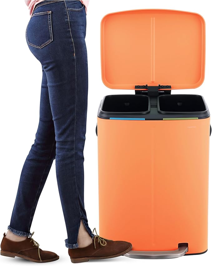 happimess HPM1005K Marco Rectangular 10.6-Gallon Double Bucket Trash Can with Soft-Close Lid, Carrot Cake, Fingerprint Resistant, Modern, Minimalistic for Home, Kitchen, Office, Bedroom, Bathroom