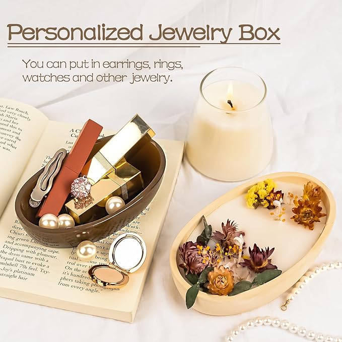 - Storage Tray Mold Set: The set includes 2 oval bowl silicone molds of different sizes ( 6.8x4x1.6in & 6x3.5x1.5in ). Silicone tray mold has a perfect curve, like a small boat, elegant and exquisite, you can use it to make practical crafts for storing items or placing candles