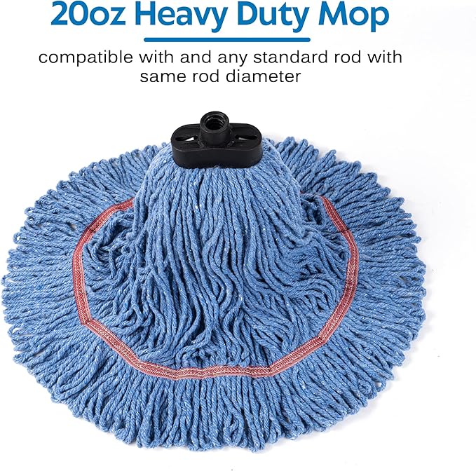 - Heavy Duty Commercial Industrial Grade Wet Mops - The string wet mops are designed to meet the most demanding cleaning needs.The package comes with 57.5" screw-on handle and 20oz large-sized mop heads. Reliable and versatile for various settings,including residential floor cleaning.