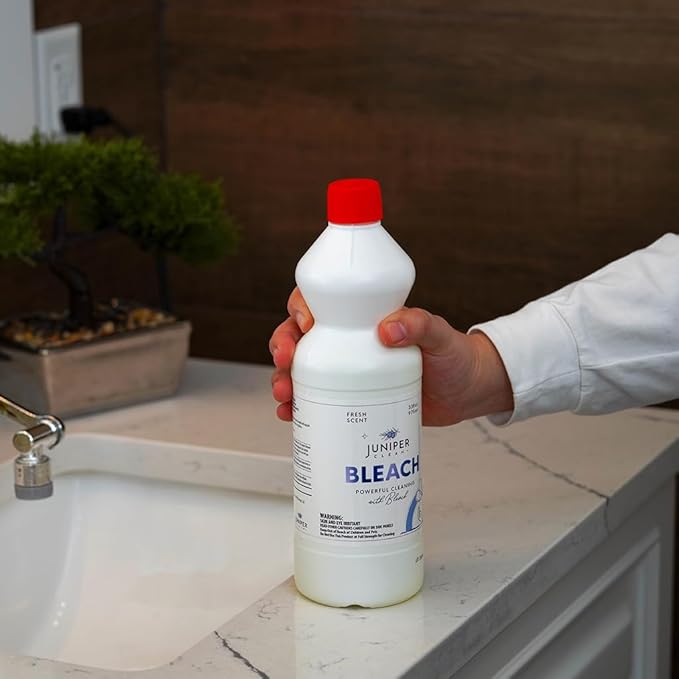Juniper, 33 Fl Oz Liquid Bleach for Bright Whites, Fresh Scent Surface Cleaner for Bathroom, Kitchen, All Purpose Cleaner with Bleach (Pack of 12), Total 396 Ounce
